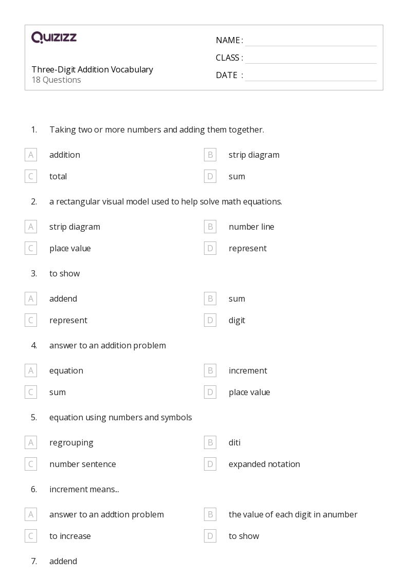 50+ ThreeDigit Addition and Regrouping worksheets for 3rd Grade on 📥 Download Image